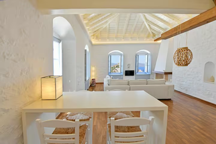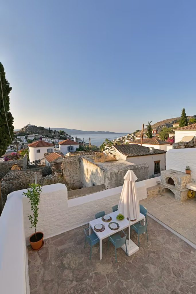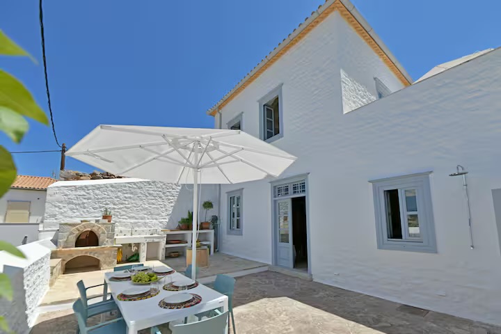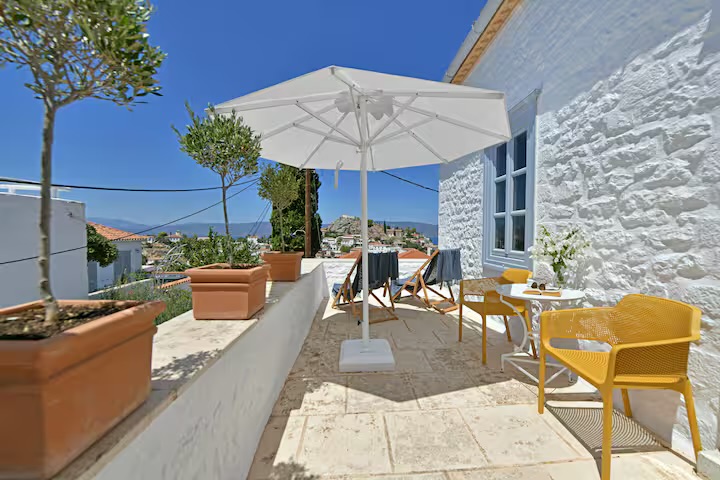 Αυτή η όμορφα διατηρημένη ιδιοκτησία συνδυάζει ευρύχωρους και φυσικά φωτισμένους εσωτερικούς χώρους με καλά επιπλωμένους εξωτερικούς χώρους που προσφέρουν εκπληκτική θέα στο μαγευτικό λιμάνι και το νησί, την Πελοπόννησο και το πιο σημαντικό, αξέχαστα ηλιοβασιλέματα.